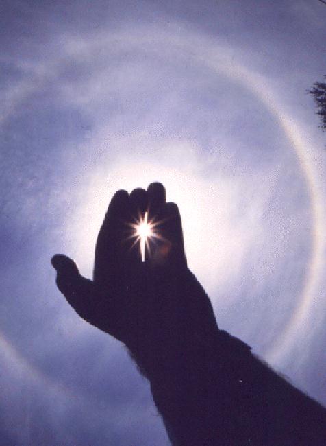 svetlobe na ledenih kristalčkih (drobne prizme v atmosferi).