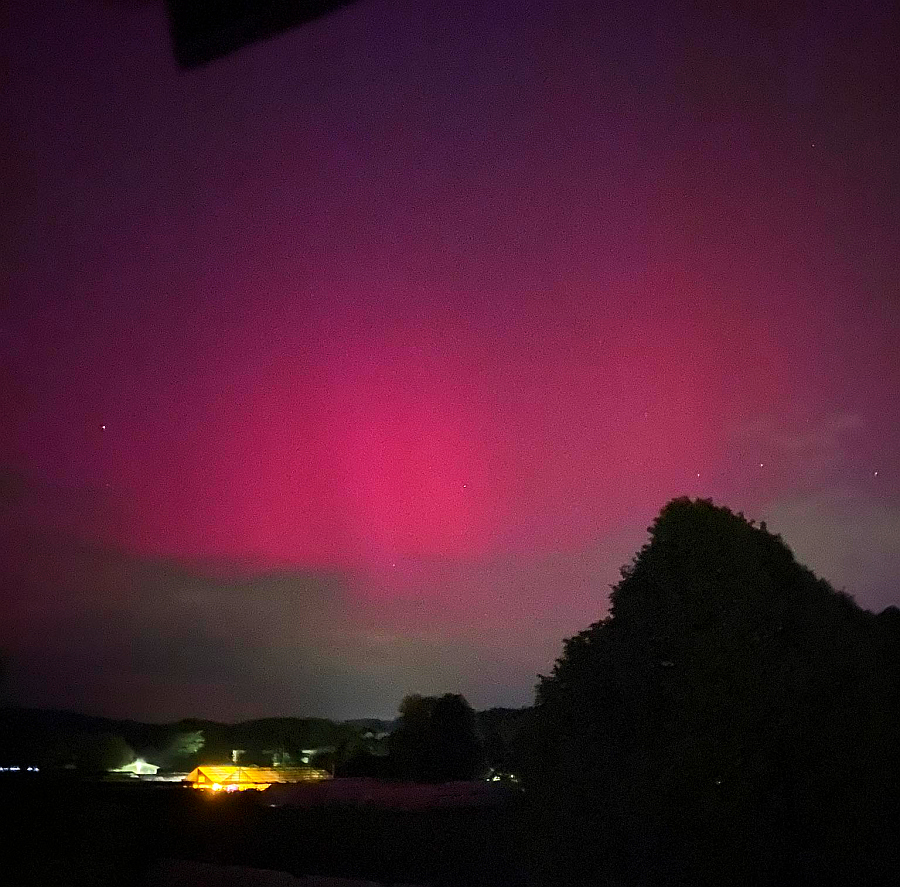 Klemen Blokar je v druščini šentviških ljubiteljev astronomije posnel tale prečudovit polarni šij nad Rašico - 10. maj 2024,