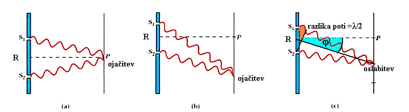 - razlika_poti = R*sin (φ) = R*φ = (λ/2) ,
