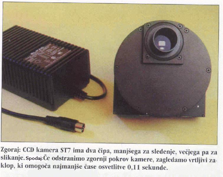 Slike v prispevku so bile posnete s CCD kamero ST7 takorekoč na en mah. Slike mogoče niso kaj posebnega, je pa bila pot do njih dolga in mogoče tudi poučna. Moj namen je bil le prepričati Spiko, da objavi vsaj kakšno izmed slik, a je urednik hotel kot pogoj še nekoliko daljši spremni tekst. Odločil sem se, da kar se da realistično opišem nekatere začetne okorne korake, ki spremljajo uvajanje v čisto novo in neznano delo s CCD kamero. Zraven sem vključil tudi del zgodbe, kako smo sploh prišli do kamere. Vse to pa zato, da bi mogoče pomagal in dal voljo tudi ostalim astronomskim skupinam po slovenskih šolah. Na Gimnaziji Šentvid-Ljubljana smo med prvimi šli v tako imenovano urbano (mestno) astronomijo, z gradnjo observatorija na terasi šole. Pri tem so nam mnogi jemali voljo, češ v mestu se ne da opazovati, kaj šele fotografirati. Mislim, da je potem po naši poti šla še prenekatera šola. Zanimivo je to, da so se želje po CCD kameri pojavile že na začetku devetdesetih, in da je nikakor nismo uspeli kupiti. Nekatere šole so nas posnemale, tudi prehitele in nas pri nakupu že pred leti spraševale po nasvetih o CCD kameri, saj so bile prepričane, da jo že zdavnaj imamo. Dobili smo jo torej relativno zelo pozno in tukaj je nekaj prvih izkušenj in začetnih korakov. Seveda je astronomija na šoli tudi brez kamere tekla po ustaljenih korakih: opazovanja, predavanja, raziskovalne naloge, klasična astrofotografija, ki nikakor ni nepomembna ali zastarela.