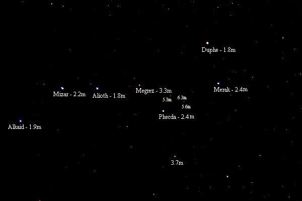 Vidnost zvezd Velikega voza, glede na osvetljenost nočnega neba.