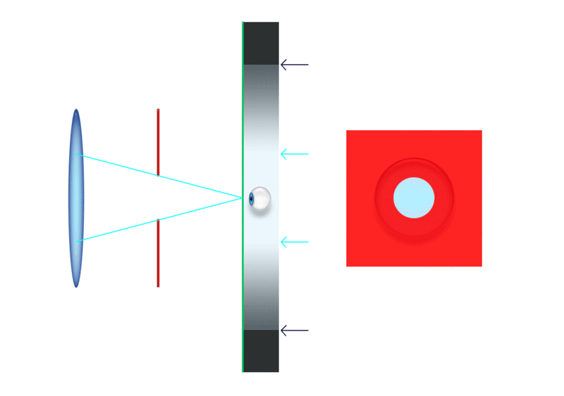 ki tvori sliko, oziroma velik del te izgubljene svetlobe pade v oko, a kot