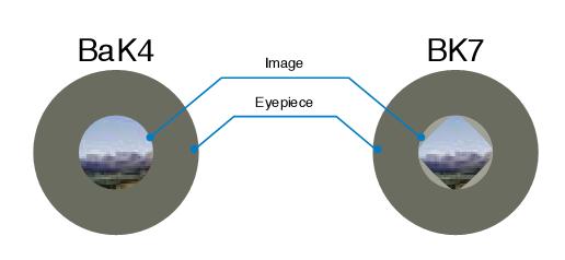 okular, ki bi vsaj na obeh površinah izstopne leče moral imeti večslojna premaza.