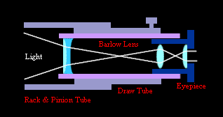 in vsako svetloba prečka 2x in 3 leče okularja. Skupaj torej 7 elementov z dvema površinama