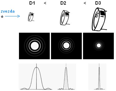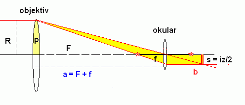v palcih ali "inčih" (D=5"=12,7cm), številka 6,3 pa je zaslonka teleskopa (f/D), f je goriščna razdalja teleskopa. Kvocient D/f=1/(f/D) je relativna odprtina teleskopa (v našem primeru je to 1/6,3). Večja relativna odprtina teleskopa da svetlejšo sliko. Zaslonka in relativna odprtina sta obratno sorazmerni količini (D/f=1/(f/D)=1/zaslonka).Če pomnožimo premer objektiva s številko 6,3 (zaslonko), dobimo goriščno razdaljo objektiva teleskopa (f= 6,3XD=6,3X12,7cm=80cm). Še enkrat, zaslonka je razmerje med goriščno razdaljo in premerom objektiva, tako kot pri fotoaparatu. Večja je odprtina teleskopa (pri enaki goriščni razdalji), manjša je zaslonka, večja je relativna odprtina, svetlejša je slika. Priporočam zaslonke med 5 in 10.