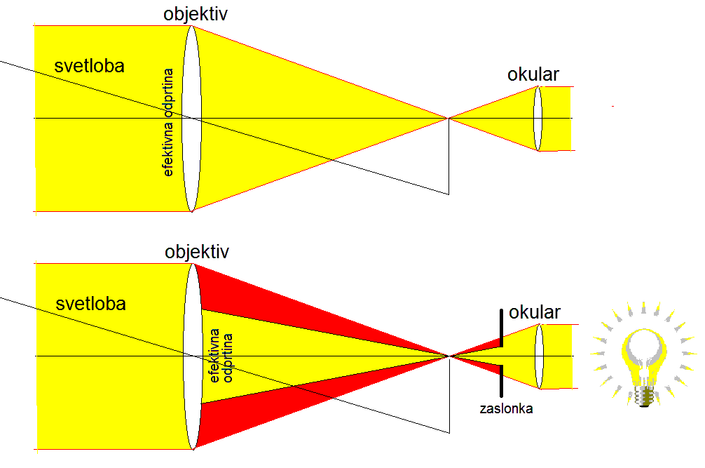 Število površin, ki jih svetloba prečka na svoji poti skozi daljnogled do naših