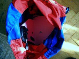 Sliki, kako damo teleskop v nahrbtnik – najprej stojalo, nato tubus.