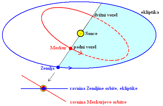 poudariti, da ravnini (orbiti) gibanja Zemlje (ekliptike) in recimo Merkurja