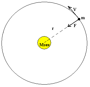 v = (G*MSON/r)1/2 = konst/r1/2.