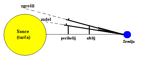 blizu presečiščne premice). Če bi bili Sonce in planeti točkasta telesa, bi do