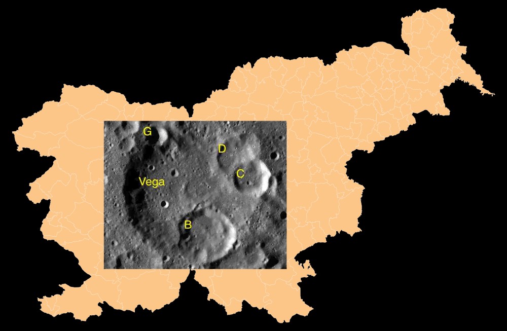Krater Vega in Slovenija - groba primerjava velikosti.
