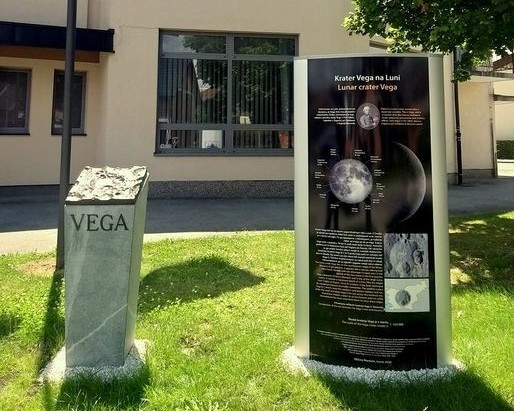Na karti Lune avtorjev Maedlerja in Beeera najdemo že leta 1837 krater Vega na jugovzhodu Lune - blizu Južnega morja (Mare Australe). Glavni krater meri v premeru skoraj 80 km in je 2,9 km globok.