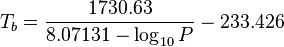 Antoine equation (Antoinova enačba - tlak v torrih, js spodaj je prirejen za hPa):
