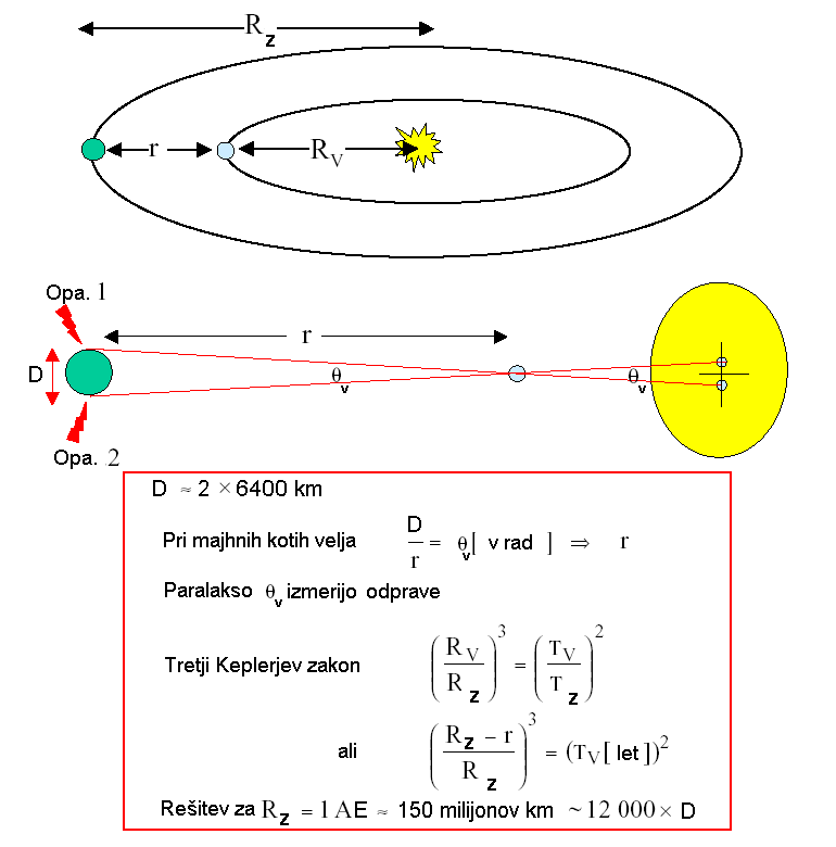 paralaksa je qv = AB / (Rz- Rv) in