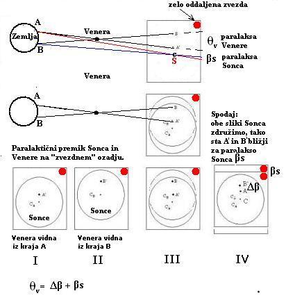 saj sta paralaktična kota sorazmerna z oddaljenostima Venere in Zemlje od Sonca.