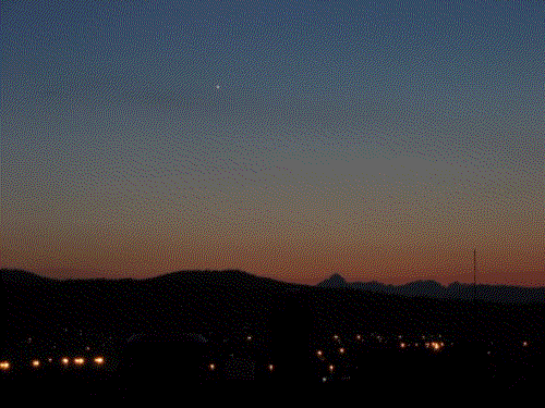 Animacija večerne poti Venere, zašla je vzhodno od Triglava, 25. maj 2004, posnela Klemen Blokar in Zorko Vičar.
