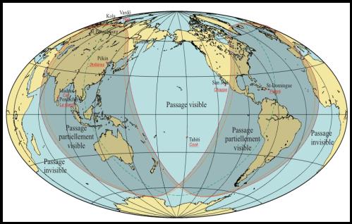 opazovanj v krajih Vardö (Laponska) in Papeete (Tahiti).