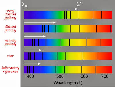 Dopplerjevega premika spektralnih črt oddaljenih galaksij proti daljšim