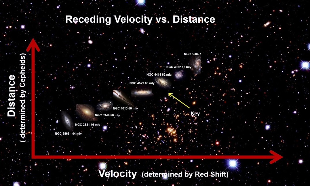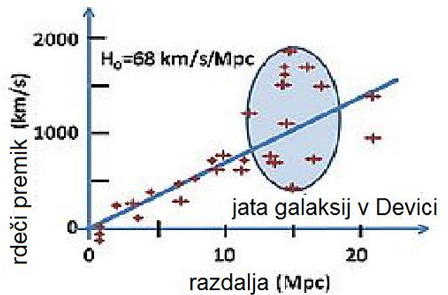 dobimo znameniti Hubblov zakon: v = Hd. Če poznamo torej hitrost neke