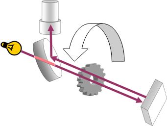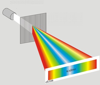 Uklonska mrežica razdeli svetlobo po barvah, najbolj se uklonijo daljše valovne dolžine (rdeča).