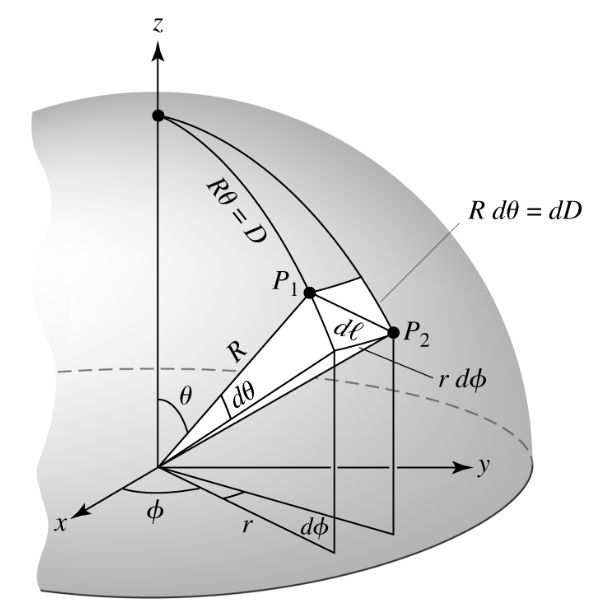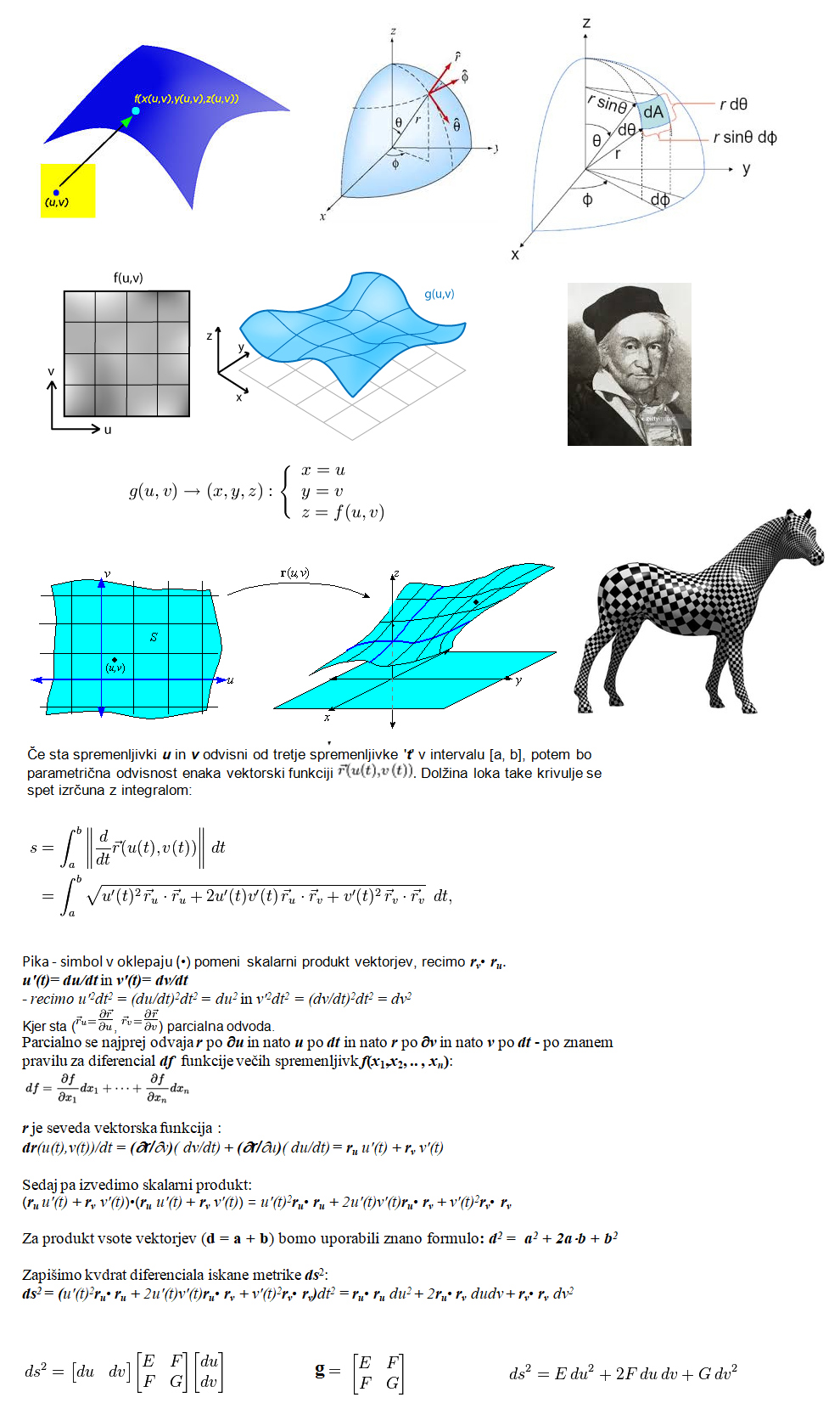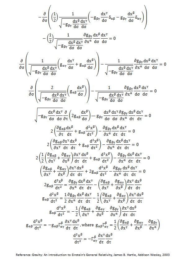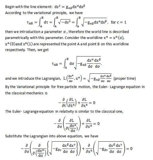 - zelo nazorna kombinirana izpeljava metrike preko Euler–Lagrangeeve enačbe (III),