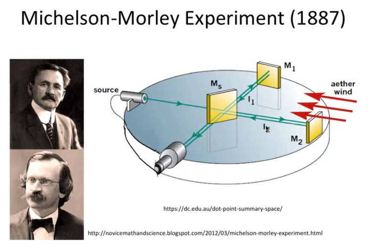 19. - ALI SVETLOBA ZA POTOVANJE POTRBUJE SNOV (imenovali so jo "eter")? (odgovor je NE - ta izhaja iz ničelnega Michelson-Morleyjevega poskusa)