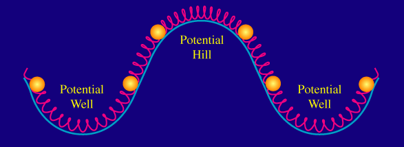 Potencialni hribi se pojavijo v območjih z nizko gostoto. Stiskanju v dolinah povzroča redčenju na vrhovih (v približku dobimo sinusno nihanje).