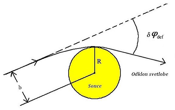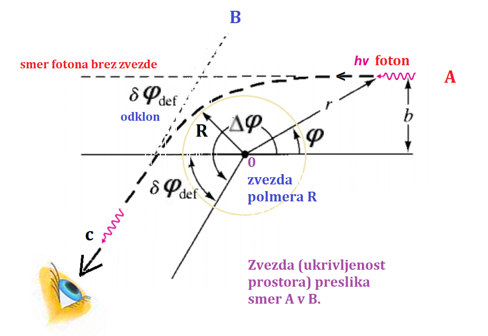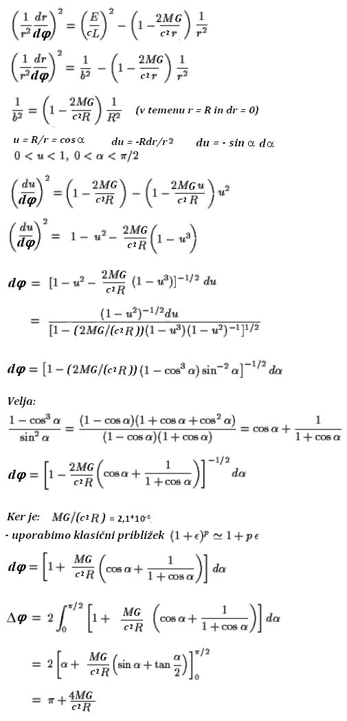 37. - posladek – izračun kota ukrivitve žarka ob zvezdi ,