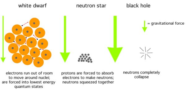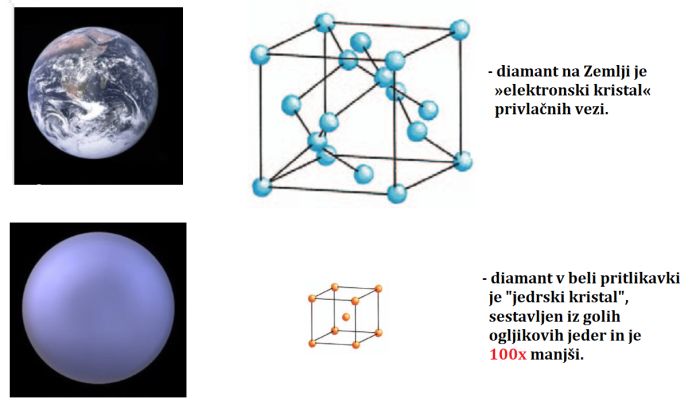 Kratka zgodovina nastanka težkih elementov, tudi atomov našega telesa. V središču zvezd, kot smo že omenili, se torej tlak in temperatura povečata (v Soncu na 15 milijonov K) do te mere, da se recimo protoni, v kombinaciji z nevtroni, zbližajo do razdalje, ko prevlada močna jedrska sila nad odbojno silo med pozitivnimi protoni in se tako vodikova jedra zlivajo v helijeva (2 nevtrona in 2 protona združena v jedru helija tehtata nekaj manj kot pred reakcijo, pred združitvijo – razlika je Δm. Kot že rečeno - to lastnost imenujemo tudi masni defekt, ki pa sprosti ogromno energijo E = Δmc2. Tako recimo Sonce lahko stabilno sveti milijarde let in torej zvezda kar sama vzdržuje visoko temperaturo in tlak nasproti lastni teži zvezde – zvezda tako ne ugasne, se ne sesede). Ko se pridela zadosten delež helijevih jeder in začne primanjkovati vodikovih, se začne zvezda sesedati, tlak in temperatura v sredici spet naraščata. Če tlak in temperatura (okrog 100 milijonov K) v središču dosežeta primerne vrednosti, stečejo še bolj zapletene reakcije, ko se helij nadalje pretvarja v ogljikova, kisikova in dušikova jedra (steče t. i. dušikov-kisikov-ogljikov cikel – to je hkrati kemijski začetek cikla potencialnega življenja na planetih, naših nebesnih potepuhih, ki se znajdejo ob pravem času na pravem kraju – kot se je to zgodilo nam ob Soncu, ki recimo beremo Spiko ...). Vse elemente v vesolju (razen vodika in večine helija - ki sta nastala kmalu po velikem poku) so v svojih sredicah pridelale zvezde. Če se zaradi dovolj velike mase (zvezde z začetno maso okrog 10 M in več) temperatura v sredici dvigne na nekaj milijard K, pa nastajajo atomska jedra do velikosti železa. Železo je (bomo razložili zakaj) tako imenovani končni produkt (vsi težji elementi od železa, tudi zlato, so nastali, nastajajo ob trkih zvezd, ob eksplozijah supernov). Zelo masivna zvezda je tako po notranji zgradbi podobna čebuli - iz železovega središča navzven imamo naslednje plasti: silicijevo, dušikovo, kisikovo, ogljikovo, helijevo, v zunanji plasti zvezde pa vodikovo plast. Končna faza zvezde večje od 1,4 M je po eksploziji supernove nevtronska zvezda (elektroni in protoni se zaradi velikih sil stisnejo v nevtrone – jedro take zvezde je velik sestavljen nevtron). Pri večjih masah, nekaj Sončevih, pa se lahko tvori tudi črna luknja, s katere po definiciji tudi svetlobe ne uide (M —r— hν, izpeljava po domače, preko energije delca za drugo kozmično hitrost ob zvezdi z maso M, na razdalji r, velja: mv2/2 – GmM/r = 0 => r = 2GM/v2 => kaj pa, če je ta delec foton svetlobe, potem velja Schwrzschildov polmer dogodkovnega horizonta črne luknje rs = 2GM/c2, od tega polmera proti središču ni več moč ujeti 'odhajajoče' svetlobe, informacij, kaj se dogaja v črni luknji, idejo je podal že John Michell leta 1783), zato črno luknjo opazimo le posredno, ko iz okolice preko akrecijskega diska (teoretično telo, črna luknja, z »neskončno« gostoto - singularnost) srka vase materijo iz okolice (v rotacijskem disku padajoče materije se zaradi trenja in sproščene energije zazna tudi rentgensko sevanje, močno magnetno polje in posledično polarizacija ...). Sledi nekaj osnov astrofizike - popestrenih s slikami, ki nam strnjeno razkrivajo različne tipe zvezd, njihove življenjske poti, zaključne faze in načine, kako precej enostavno, preko spektrov, določimo sestavo oddaljenih zvezd in njihove okolice.