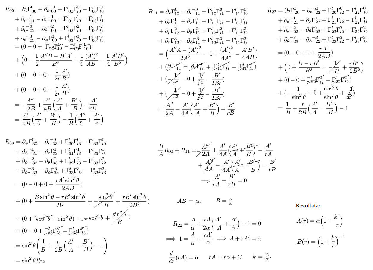 - izpeljava Schwarzschildove rešitve iz Einsteinovih enačb polja - uveljavljen geometrijski pristop (II),