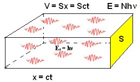 Velja pa tudi - iz termodinamike, da energiji fotona pripišemo temperaturo T, pomnoženo z Boltzmannovo konstanto (za majhne vrednosti hν/(kT), ko zanemarimo vse višje člene vrste, recimo (1/2!)(hν/(kT))2 ..., potem velja približek