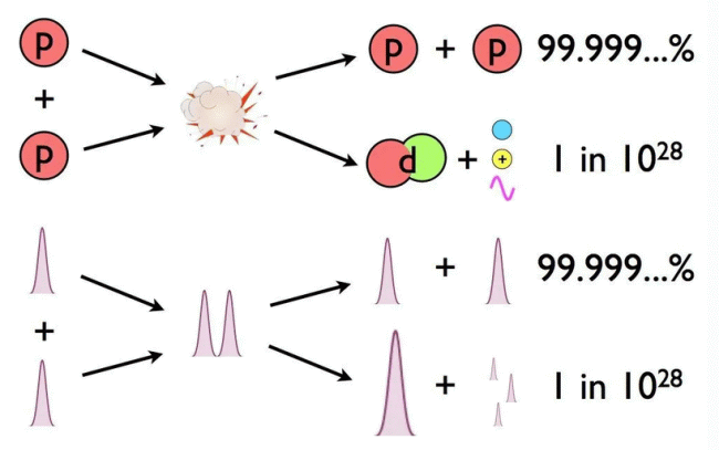 ali nas masa bozonov pripelje do dosega šibke jedrske sile in masa bozonov pionov do velikosti atomskega jedra ali se da pokazati, da so kvarki v protonu in nevtronu le procentek energije (mase) obeh ključnih nukleonov - ostalo je energija nemasnih bozonov gluonov!?,