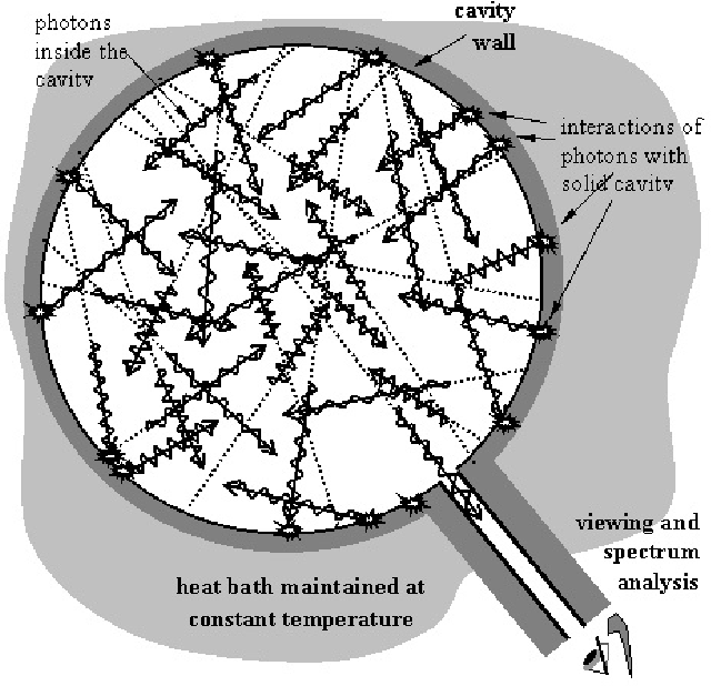 V Planckovem zakonu je kinetične energija mv2/2 nadomeščena z energijo fotona E = hν = hc/λ. Uporabimo Boltzmannovo porazdelitev za ugotavljanje pričakovane energije v termičnem ravnotežju. Verjetnost za energijo fotonov En = nhν je podana z znanim Boltzmannovim faktorjem (tudi Maxwell-Boltzmannovo porazdelitvijo):