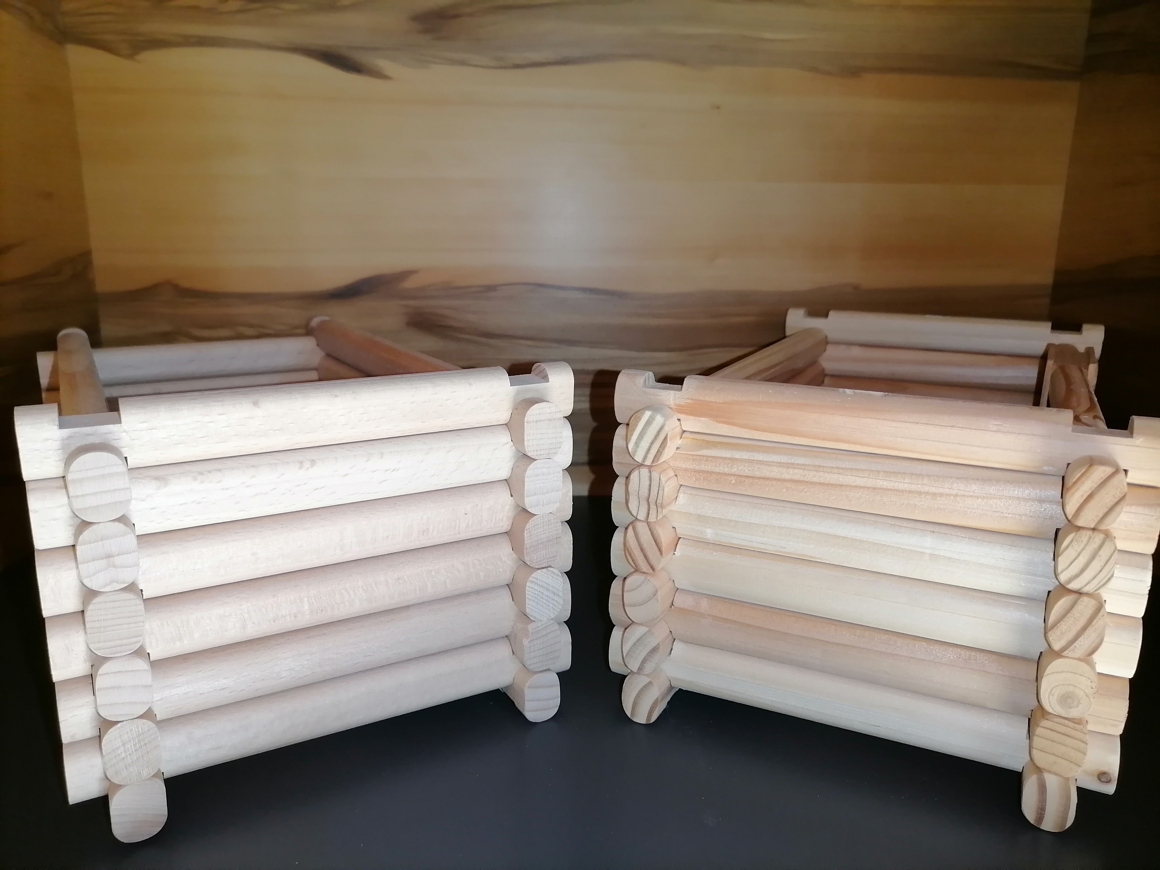 Bukev (levo) in macesen (desno) iz slovenskih gozdov. Razlika je predvsem v trdoti in trajnosti. Les bukve zagotavlja zelo visoko starost izdelka.