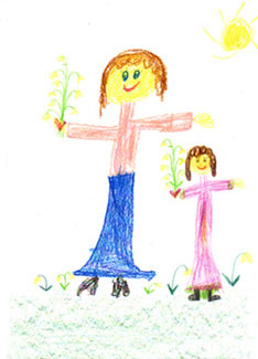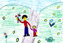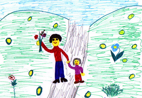 sprehod in po poti nabirata rožice.Če je treba, pomaga