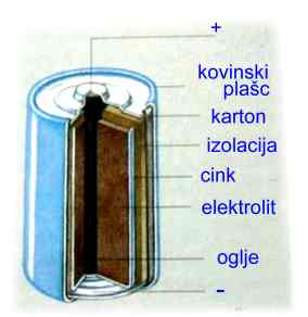 V baterijah je vskladiščena kemijska energija, ki se ob uporabi (priključitvi) pretvarja v električno energijo.
