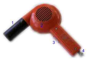 Sušilec sestavlja ohišje iz umetne mase v katerem je vgrajen elektromotor
