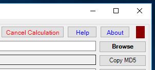HashForm has several features that make working with large files easier. There is an indicator light in the top-right corner (Figure 6), which indicates status of the application. Only when all required checksums of a file are successfully calculated, the color of the indicator light turns green. Another color indicates when the application is busy with calculation. If for whatever reason all required checksums could not be calculated then the indicator light turns red and remains read until another calculation is successfully carried out.
