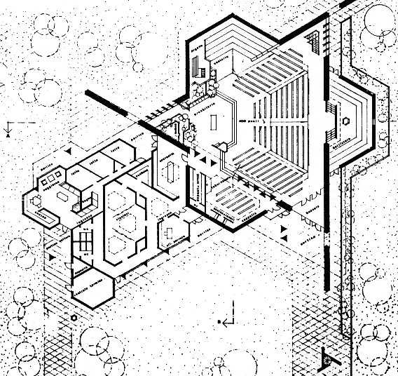 environment which would be defined by dynamics, humanism and richness of the space. His
