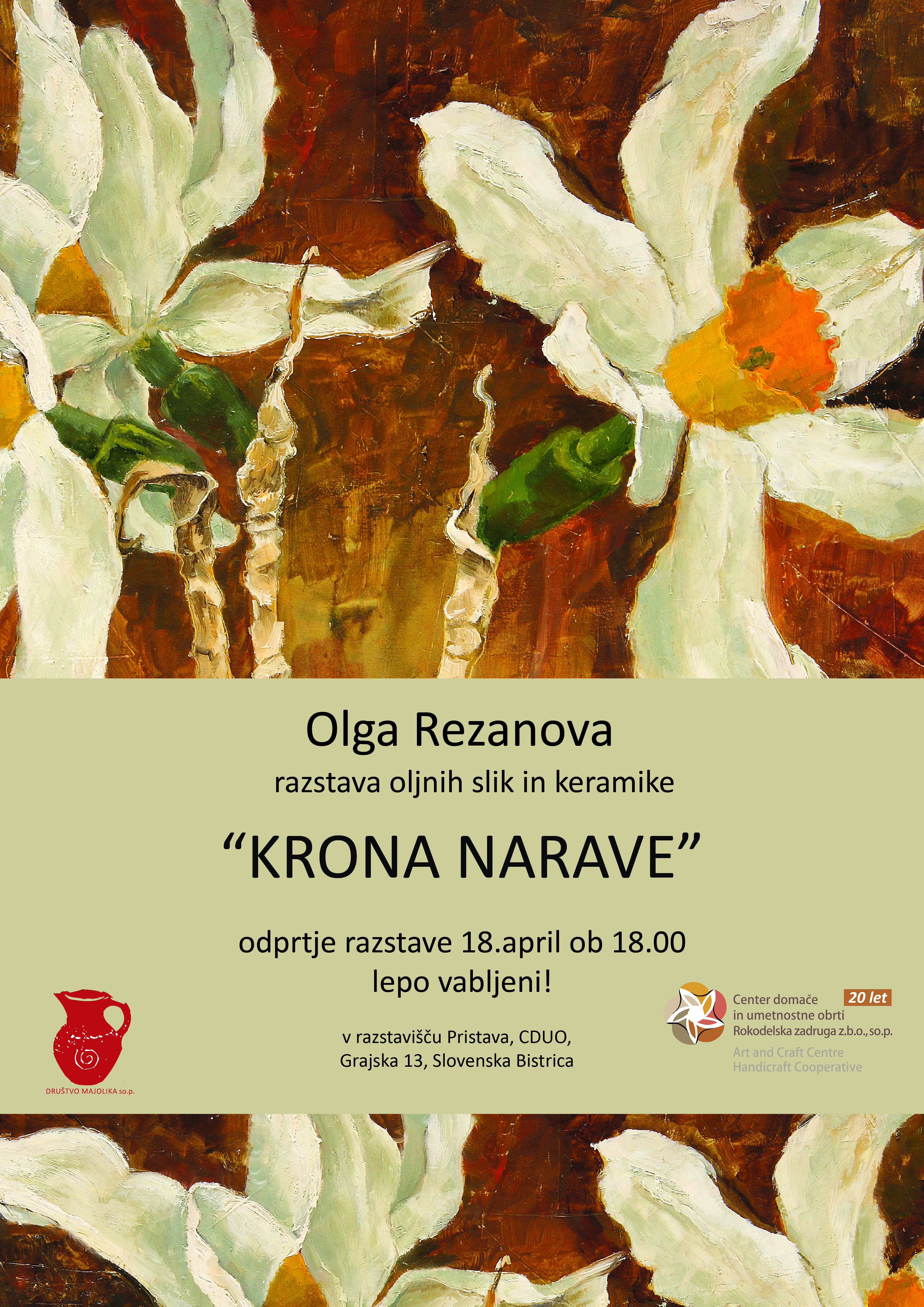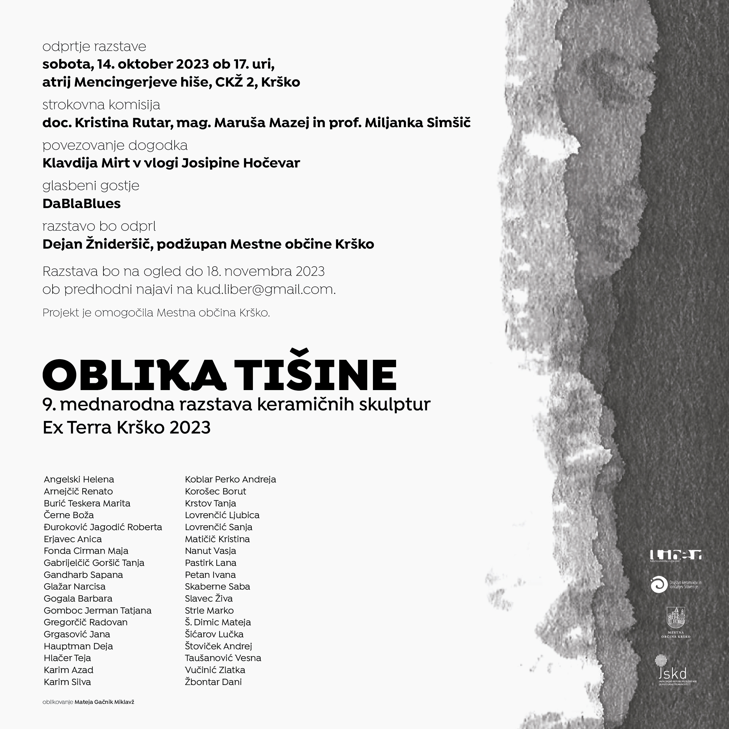Razstave bo slovesno odprla umetnostna zgodovinarka in kritičarka izr. prof. dr. Nadja Zgonik, Akademija za likovno umetnost in oblikovanje Univerze v Ljubljani.
