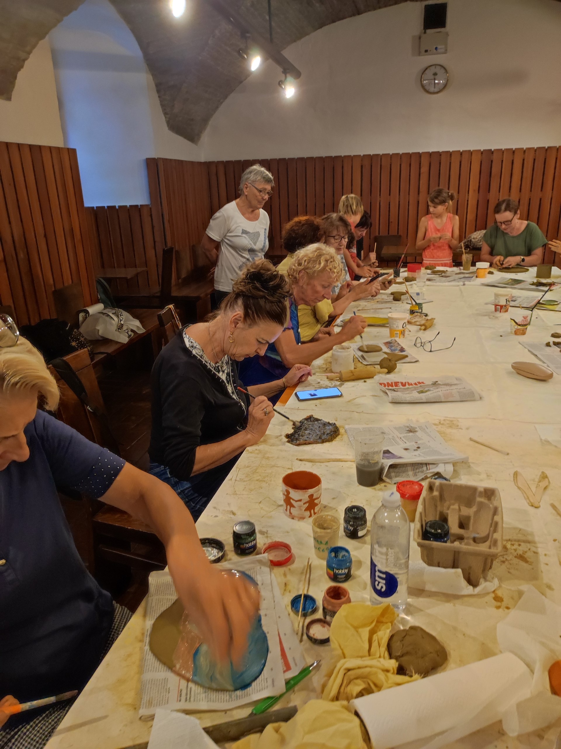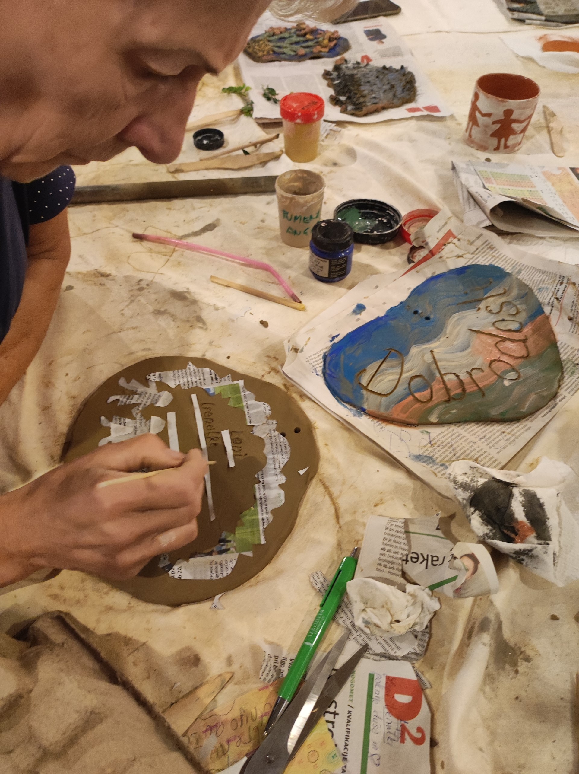 Udeleženci so delali sgrafitto tehniko, poslikave, tehniko papirnih šablonin še kaj.