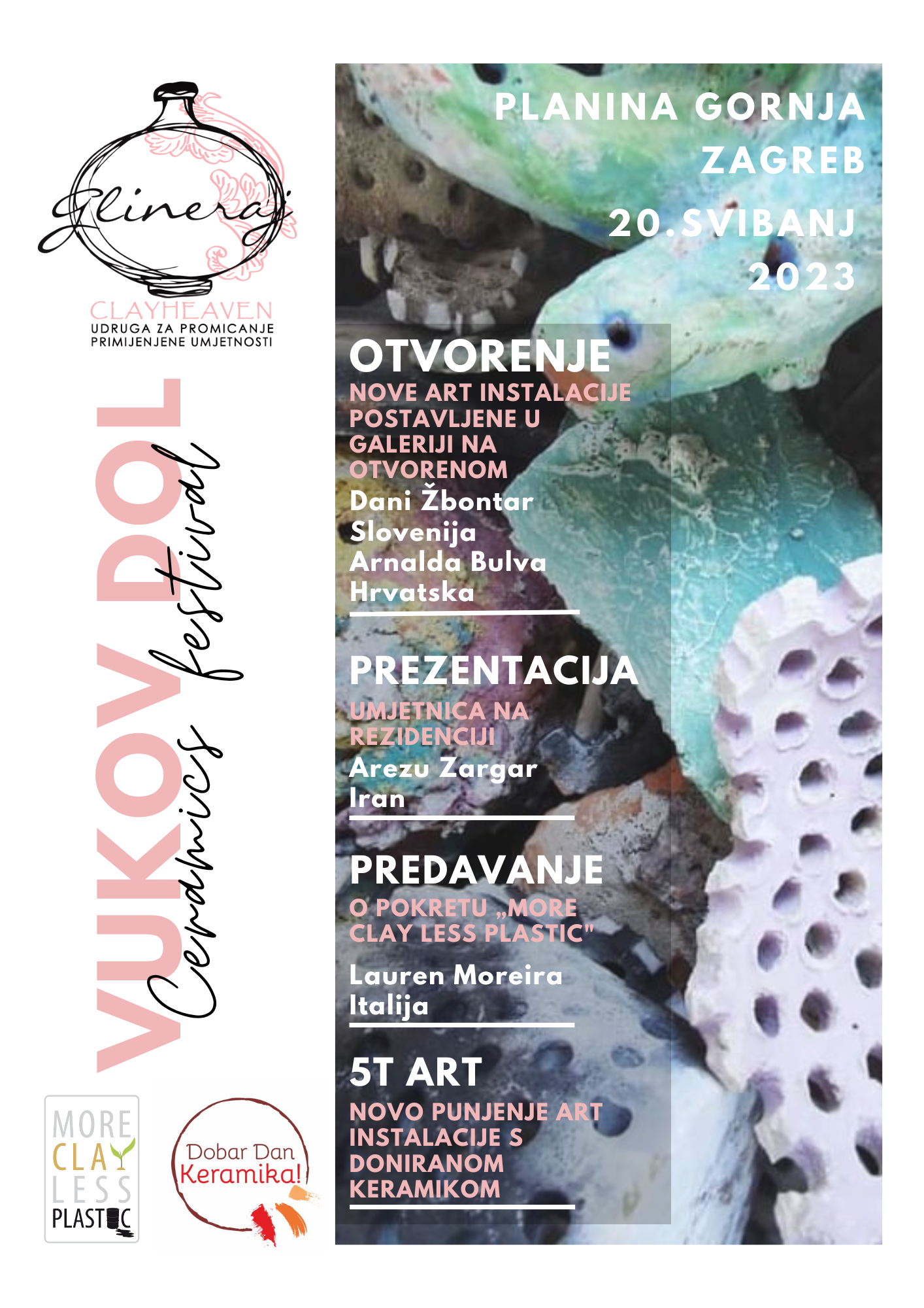 Prijazno vabljeni na otvoritev 7. forma vive Magija gline, v SOBOTO, 24. JUNIJA 2023, ob 18.00. Razstavo keramike na prostem si lahko ogledate vsak dan do konca oktobra, vstop je brezplačen.
