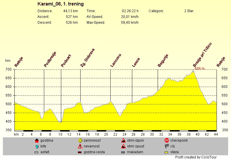 | Brezje pri Tržiču | 38,98 km | 684 hm |