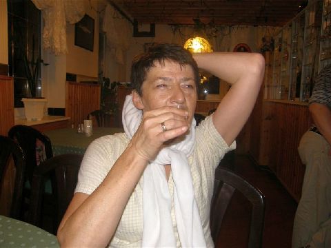 natakarica Lidija. Nazdravili smo našemu šefu, kadili cigare-te, se