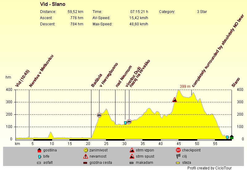 | Slano | 59,52 km | 3 hm |