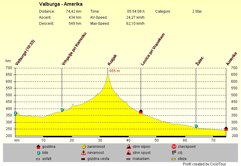 | Locica pri Vranskem | 44,37 km | 367 hm |