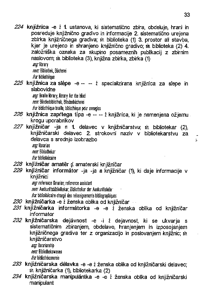 bibliotekarstva, dokumentalistike, informatike, jezikoslovja in leksikografije.