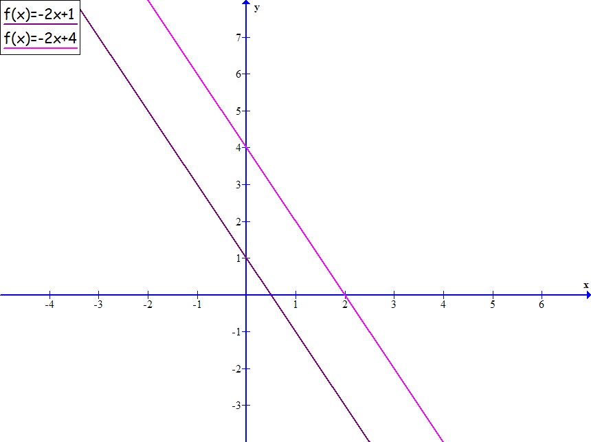 Sistem dveh enačb y = -2x + 4 in y = -2x + 1, ki v koordinatnem sistemu predstavljata vzporedni premici, ni rešljiv,ker se premici ne sekata.