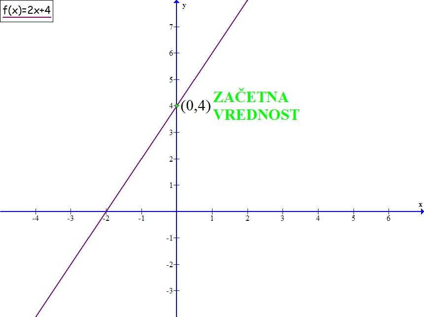 Izračun začetne vrednosti: x = 0 y = 2x + 4 = 2*0 + 4 y = 4 N (0, 4)