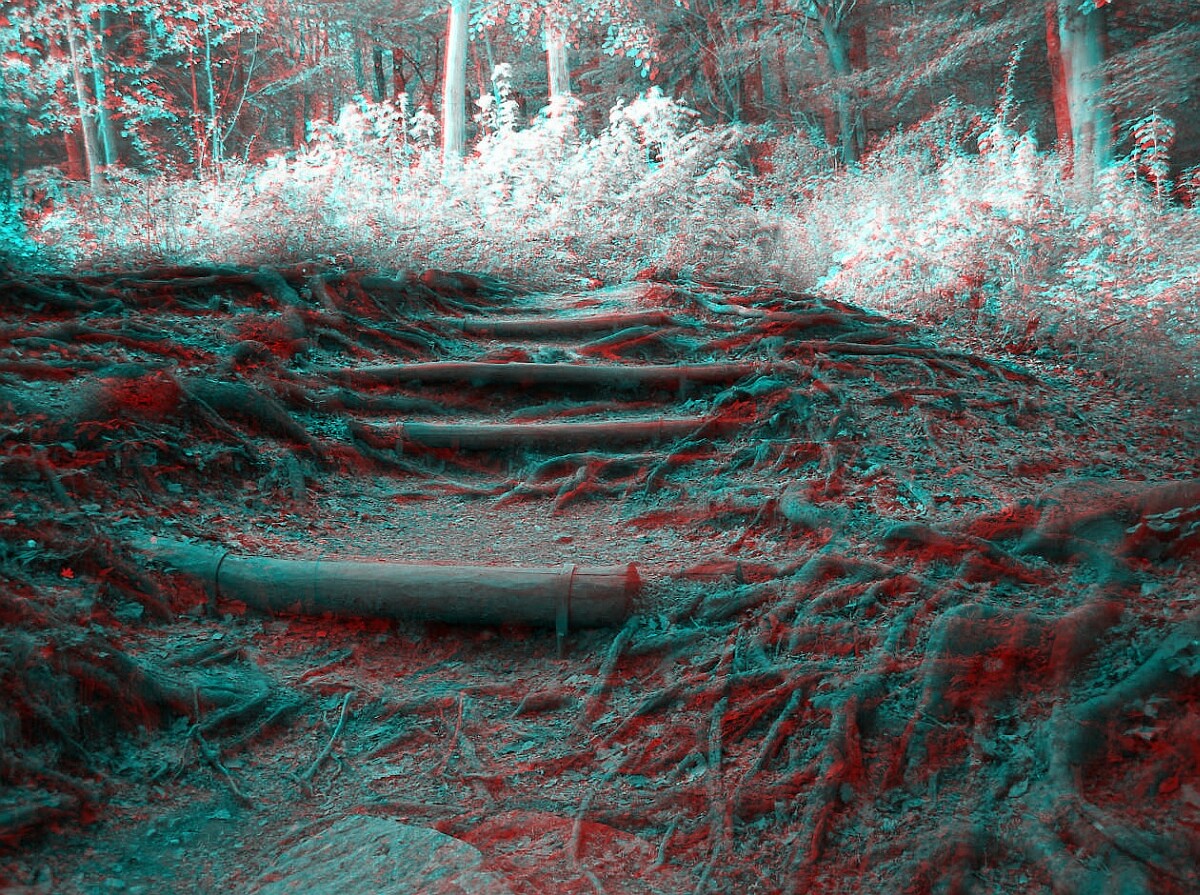 Nadenemo si rdeče - zelena očala. Pogled upremo v fotografijo in za nekaj trenutkov počakamo, da se oči navadijo na globino slike. Še boljša globinska zaznava pa je takrat, kadar spremenimo položaj telesa rahlo v levo ali desno.